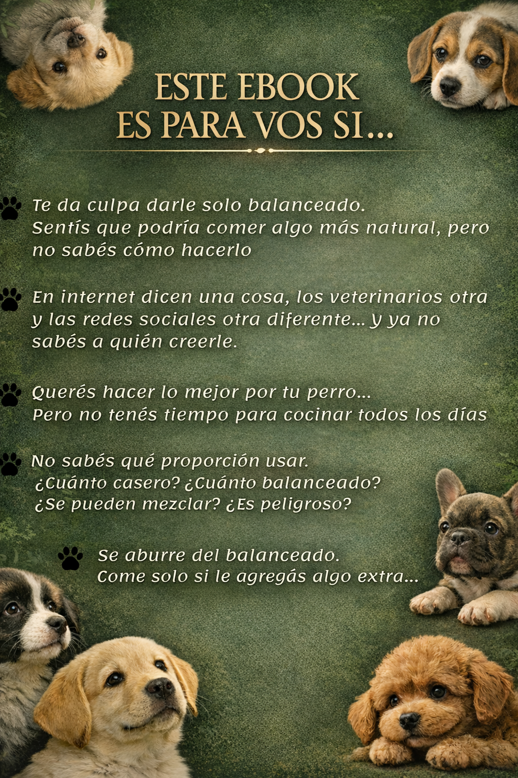 Comprando HOY te llevas el E-book de Alimentacion Canina, balanceado vs. casero te llevas tambien 7 BONOS GRATIS